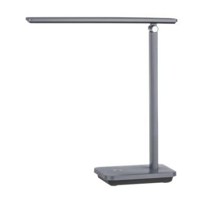 INIESTA LED asztali lámpa állítható lámpafejjel, tetszés szerint forgatható és dönthető. A lámpafej beépített LED izzókat tartalmaz szürke műanyag borítással, szabályozható fehér színű fénnyel. Érintéskapcsolóval és USB-porttal rendelkezik.