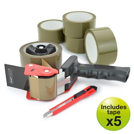 -5 db barna csomagolószalaggal (50 mm x 50 m) és szikével (9 mm)