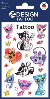 Matrica, tetoválás, 1 ív, 76x120 mm, AVERY ZWECKFORM, "Z-Design No.56675", cicák