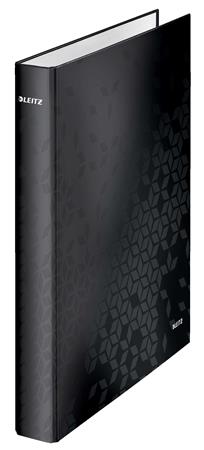 Gyűrűs könyv, 2 gyűrű, D alakú, 40 mm, A4 Maxi, karton, LEITZ "Wow", fekete