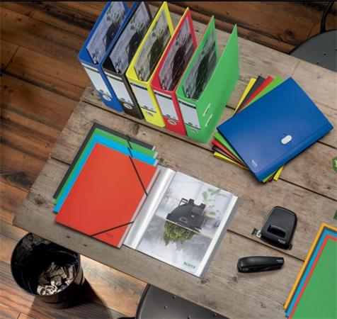 Attraktív, prémium minőségű, újrahasznosított anyagokból készült emelőkaros iratrendező, amely a teljes újrahasznosítás érdekében szétszerelhető