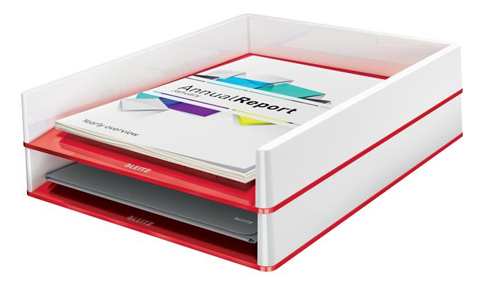 - szembetűnő, prémium minőségű, kettős színhatású Leitz irattálca fényes felülettel