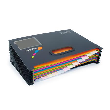 Harmonika irattartó, A4, PP, 13 rekeszes, antibakteriális, RAPESCO "SupaFile", fekete