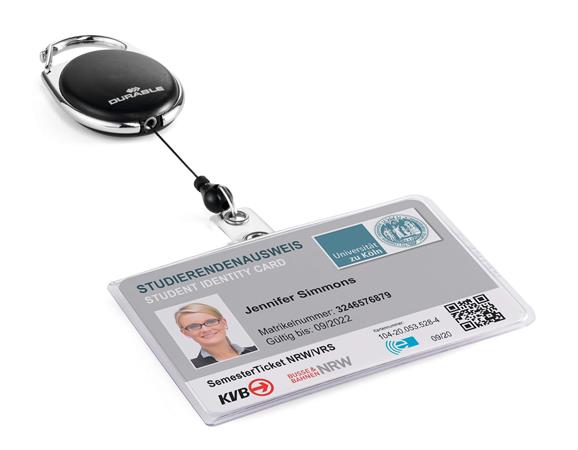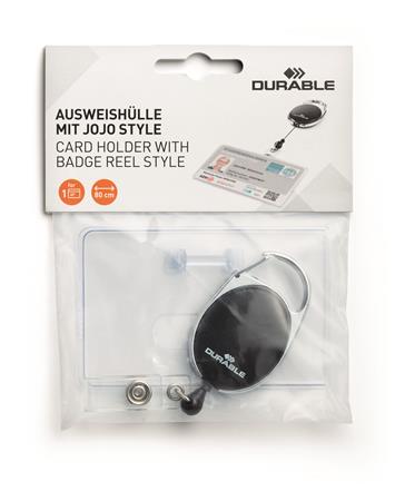 Azonosítókártya-tartó, kihúzható, karabineres, DURABLE "Style", fekete