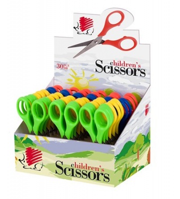 Olló display, iskolai, hegyes, 13,5 cm, ICO "Süni", vegyes szín