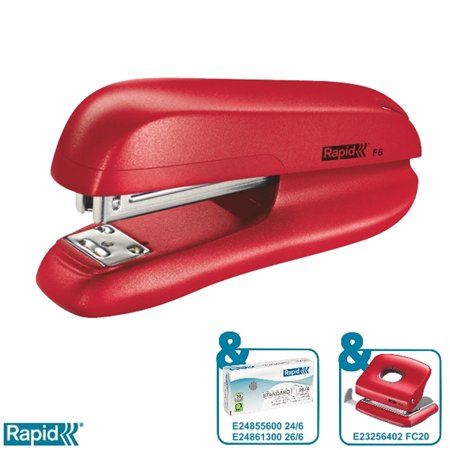 Tűzőgép, 24/6, 26/6, 20 lap, RAPID "F6", piros