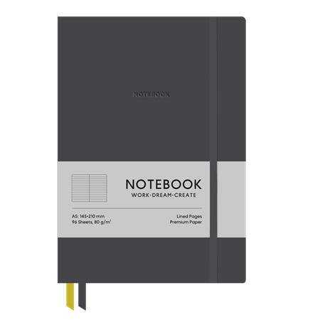 Jegyzetfüzet, A5, vonalas, 96 lap, keményfedeles, műbőr borító, SHKOLYARYK "Genius", sötétszürke