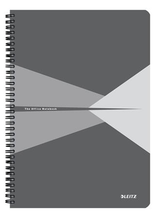 Spirálfüzet, A4, vonalas, 90 lap, laminált karton borító, LEITZ "Office", szürke