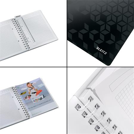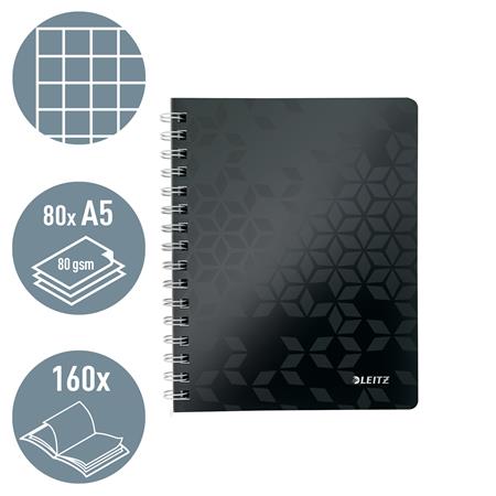 Spirálfüzet, A5, kockás, 80 lap, LEITZ "Wow", fekete