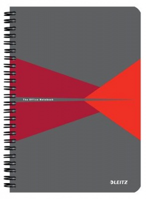 Spirálfüzet, A5, kockás, 90 lap, laminált karton borító, LEITZ "Office", szürke-piros