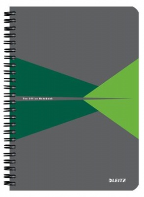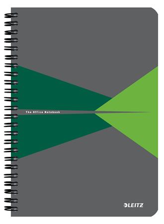 Spirálfüzet, A5, kockás, 90 lap, laminált karton borító, LEITZ "Office", szürke-zöld