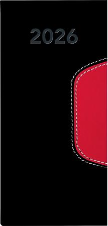 Zsebnaptár, fekvő elrendezésű, DAYLINER, "Memphis", fekete-piros