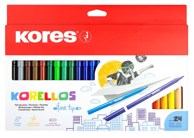 KezdőlapIrodaszerekÍrószerekFilctollakFilctoll készlet, kimosható, KORES "Korellos", 24 különböző szín