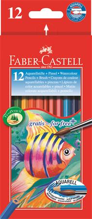 Akvarell ceruza készlet, hatszögletű, ecsettel, FABER-CASTELL, 12 különböző szín