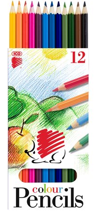 Színes ceruza készlet, hatszögletű, ICO "Süni", 12 különböző szín