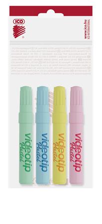 Szövegkiemelő készlet, 1-4 mm, ICO "Videotip", 4 különböző pasztell szín
