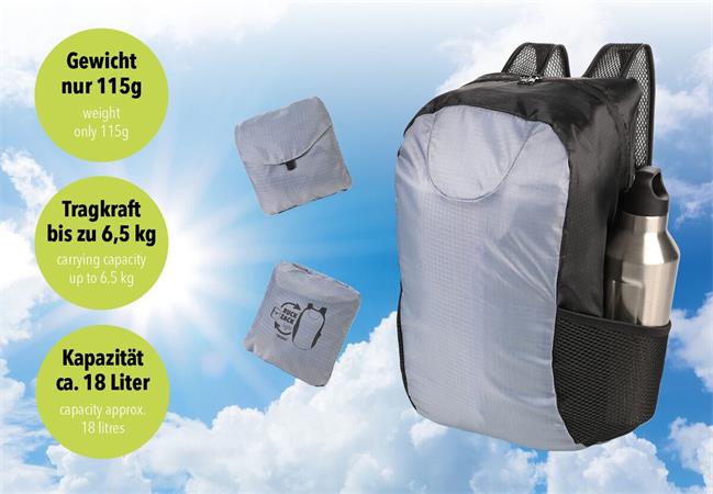Tervezett vagy spontán vásárlás esetén is kiváló választás ez a helytakarékos hajtogatott hátizsák.
