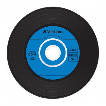 CD-R lemez, bakelit lemez-szerű felület, AZO, 700MB, 52x, 10 db, vékony tok, VERBATIM "Vinyl"