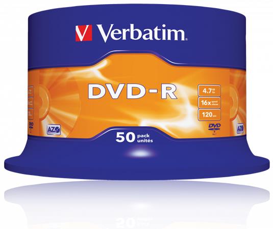 DVD-R lemez, AZO, 4,7GB, 16x, 50 db, hengeren, VERBATIM