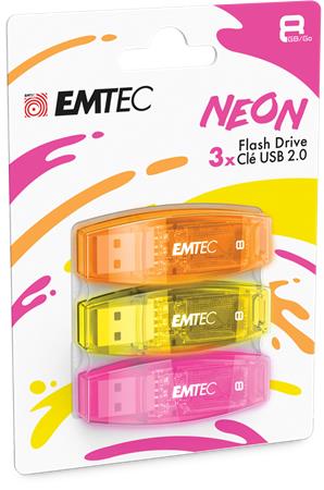 Pendrive, 8GB, 3 db, USB 2.0, EMTEC "C410 Neon", narancs, citromsárga, rózsaszín
