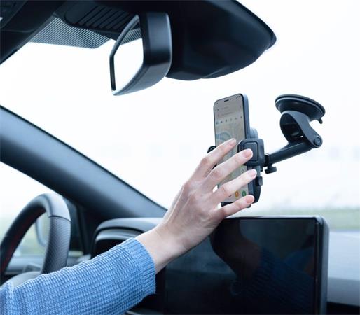 Szélvédőre vagy műszerfalra rögzíthető autós telefontartó.