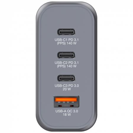 Támogatja akár 4 eszköz egyidejű töltését is(max 140 W teljes teljesítménnyel). Összecsukható egyesült államokbeli száraival és cserélhető EU- és UK-dugaszaival a tökéletes útitárs.