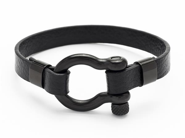 Karkötő, fekete bőr, sekli zárral, 22 cm, ART CRYSTELLA®