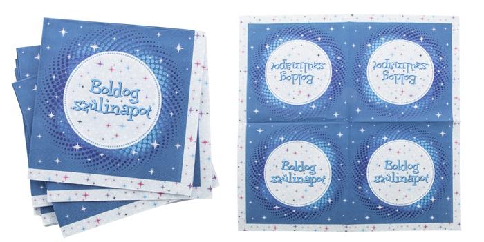 Szalvéta, 3 rétegű, 33x33 cm, "Boldog Születésnapot", kék