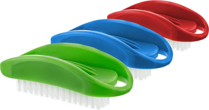 Klasszikus egyoldalú műanyag körömkefe, műanyag szálakkal.