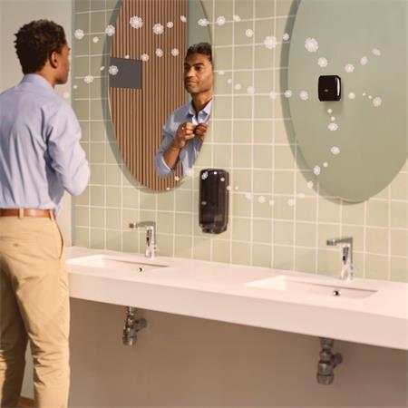 Az Elevation termékcsaládba tartozó Tork folyamatos adagolású légfrissítő adagoló folyamatosan és egyenletesen oszlatja el az illatot.