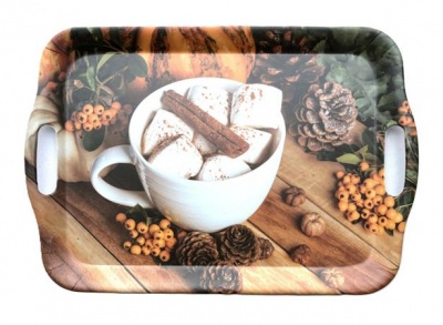 Tálca, szögletes, műanyag, kávéház mintás, 35,5x25,5 cm
