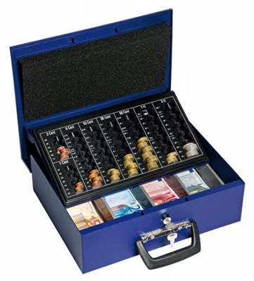 Pénzkazetta, Euro bankjegyekhez és érmékhez, 35,5x27,5x10 cm, WEDO "UNIVERSA", kék
