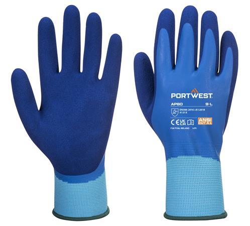 Védőkesztyű, latex, latexhab, tenyerén mártott, M méret "Liquid Pro", kék
